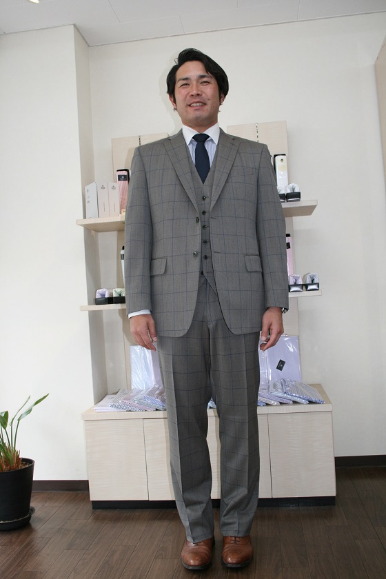 今回は濃紺のサマースーツとグレーの冬物をお作り下さいました。